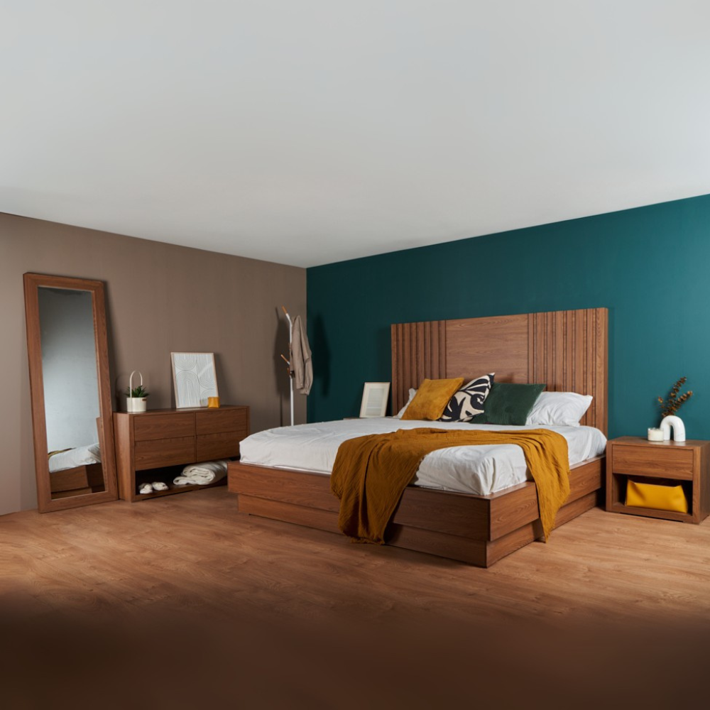 Transforma tu dormitorio con este set que incluye una cabecera y dos burós, fusionando estética y funcionalidad en un sólo conjunto. Redefine el descanso con su estilo y acabados de alta calidad, aportando calidez y sofisticación a tu espacio. Las mesas de noche ofrecen almacenamiento eficiente y un diseño versátil que complementa perfectamente cualquier habitación. Este set crea un ambiente acogedor, organizado y lleno de elegancia. Fabricados con materiales duraderos y un estilo atemporal, se entregan completamente armados para un uso inmediato. El conjunto perfecto para un hogar lleno de distinción.