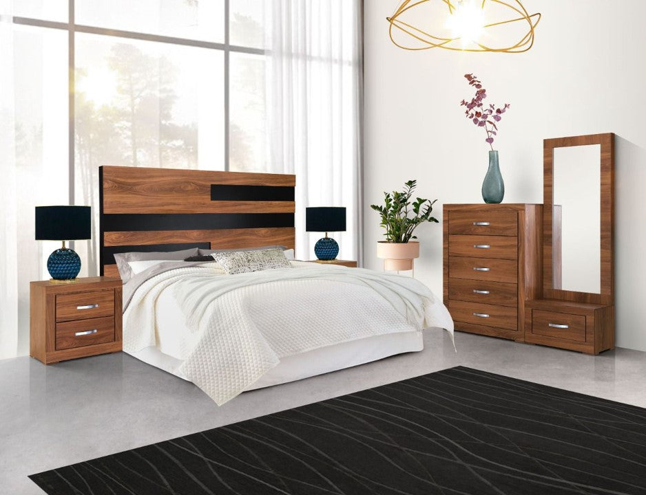 Cabecera Color Nogal y Negro. Se entrega armado. No incluye base ni colchón.
