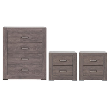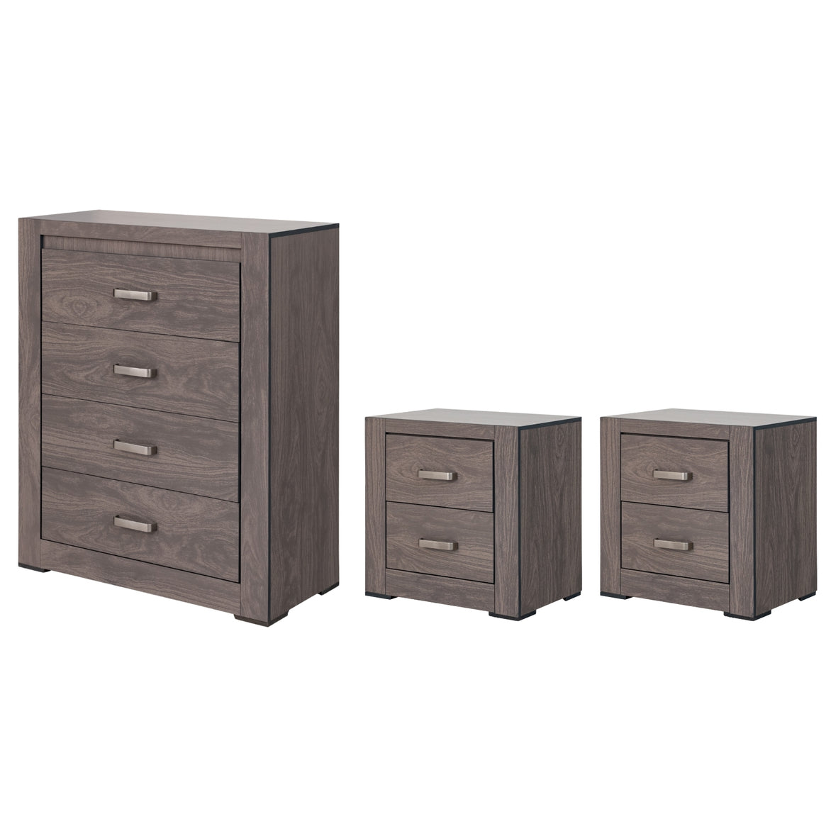 Set de cómoda con 2 burós de color gris. Se entrega armada.