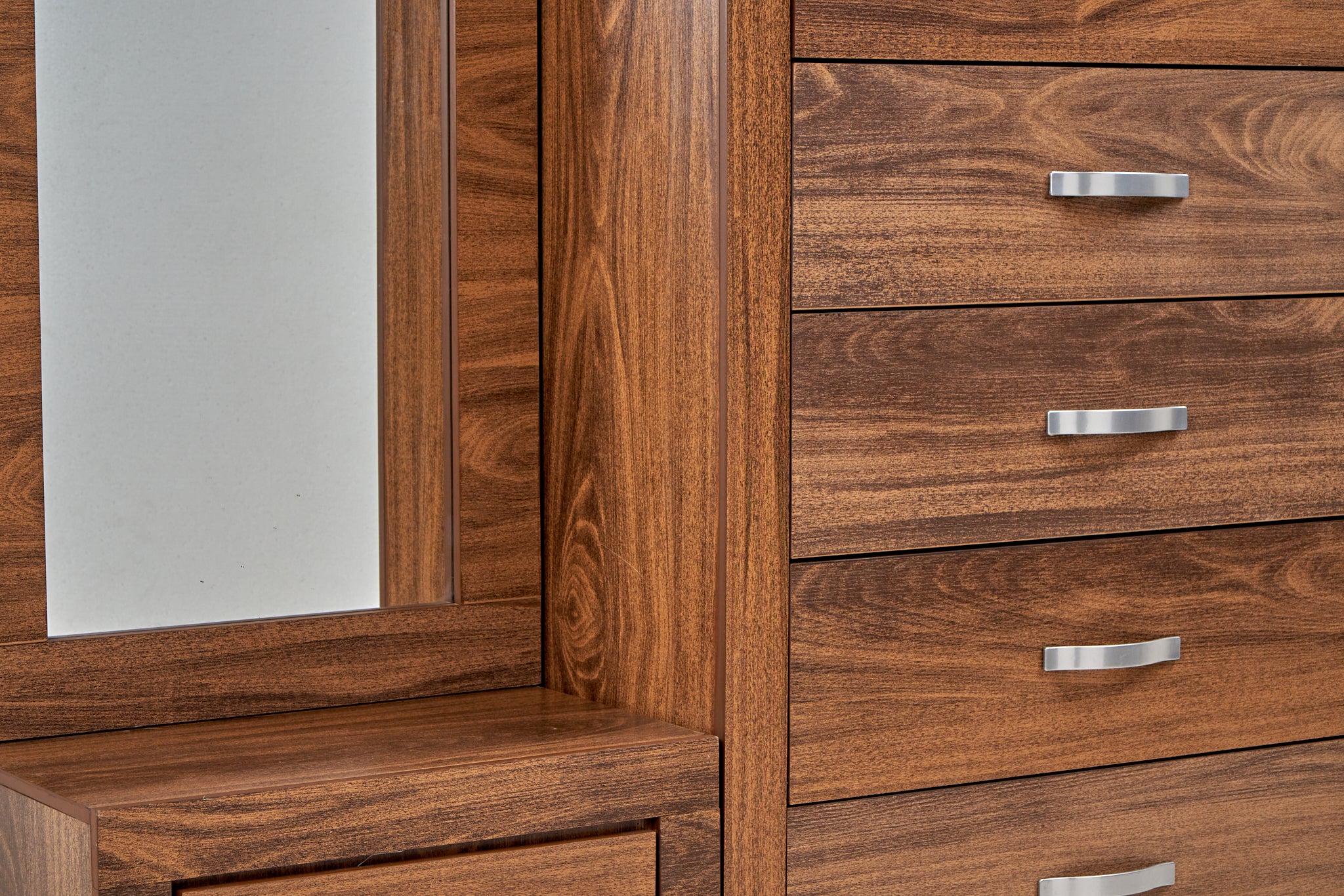 Espejo de Cuerpo Completo / de Pie con 1 Cajón Color Nogal. Se entrega armado.