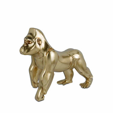 Figurilla esculpida en poliresina en forma de gorila con acabado en color dorado