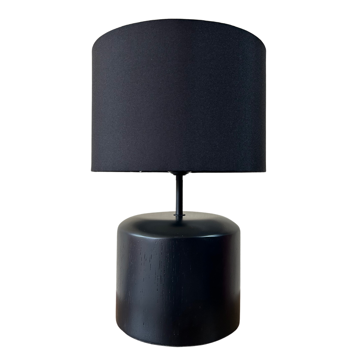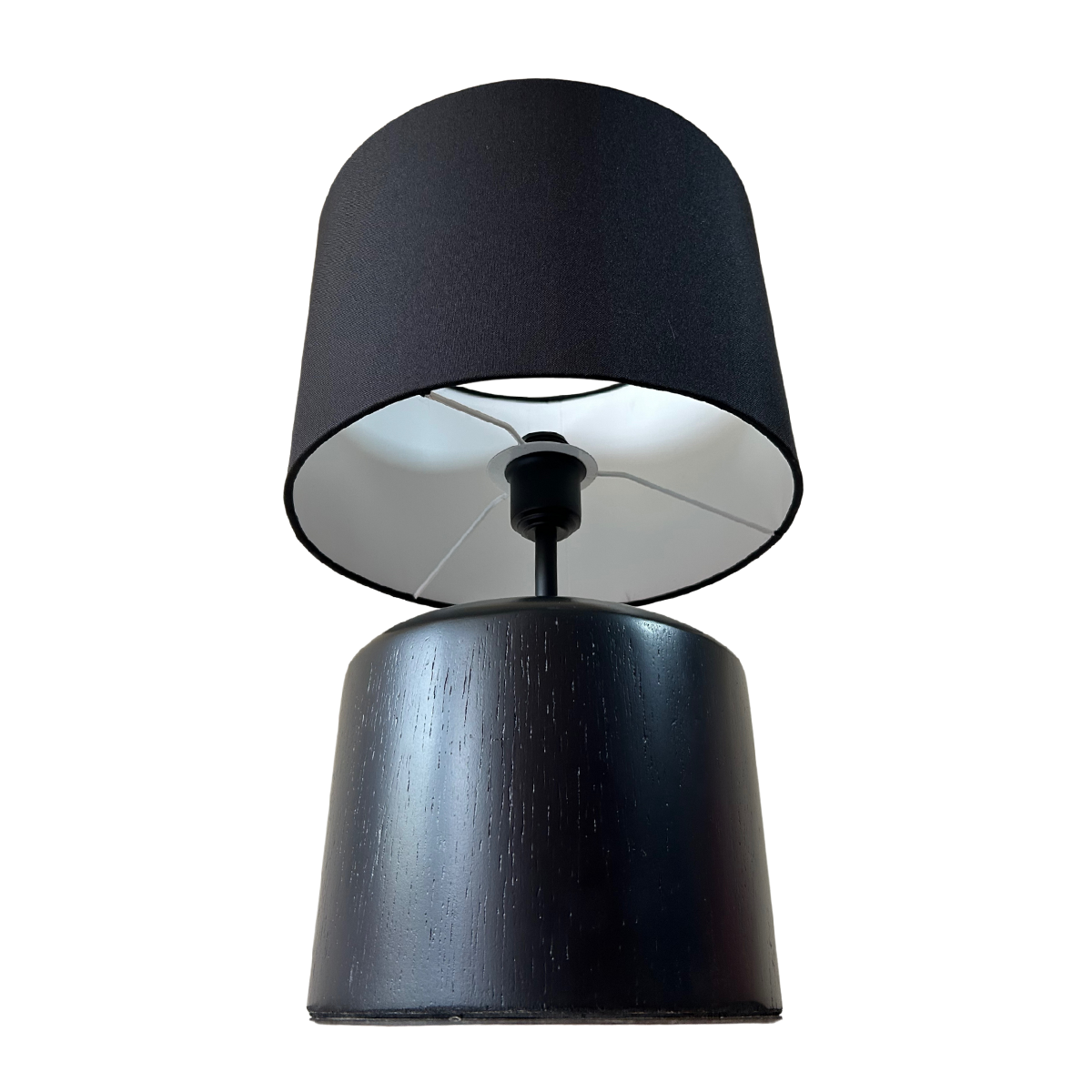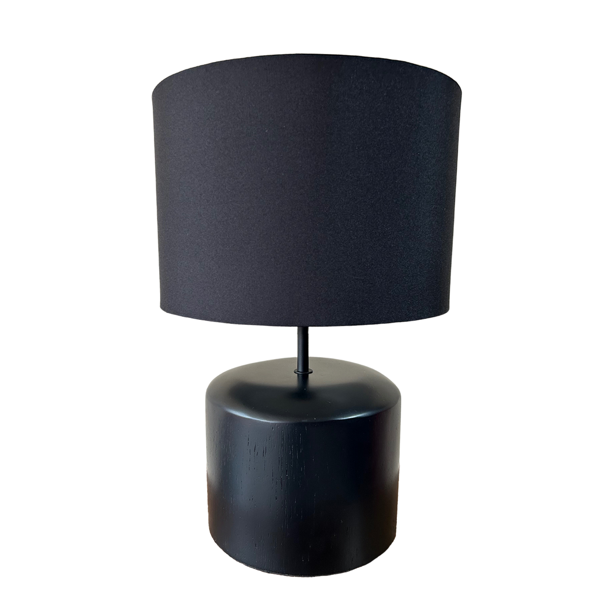 MATERIAL: Fabricado con madera de pino, acabado negro, tubo para porta socket y pantalla de tela negra
