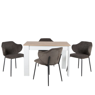 Mesa Aspen Roble y Blanco con 4 Sillas Suanna Gris