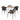 Mesa auxiliar con base Roble. Sillas con asiento y respaldo de MDF, poliéster, hule espuma y patas de metal en color negro.