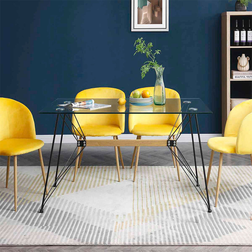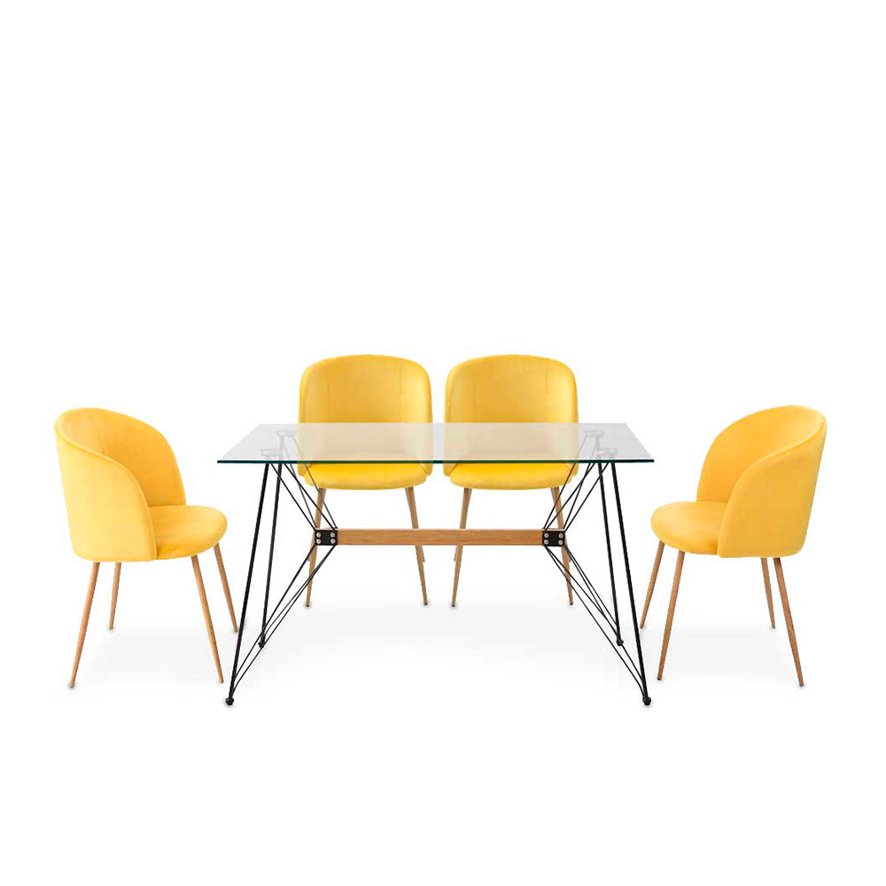 Comedor Macoba con 4 sillas terciopelo Elisa - Mostaza