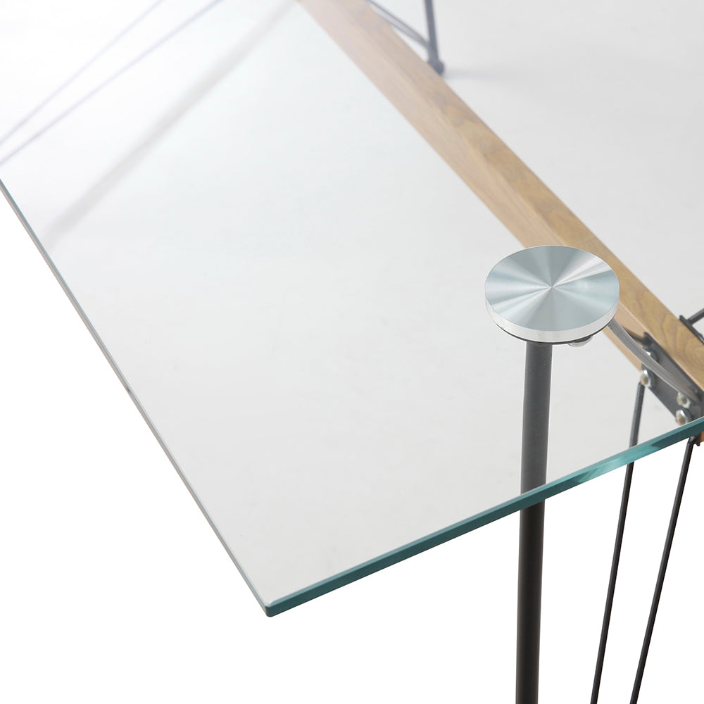 Entre el minimalismo y el estilo industrial, nuestra mesa de comedor Macoba con sus 4 sillas terciopelo Elisa pondrá modernidad en tu espacio. La fortaleza del metal queda reflejada en sus patas inclinadas, pero también hay espacio para la delicadeza del detalle de madera que incorpora su estructura. La cubierta de cristal templado aporta ligereza estética, ya que parecerá que ocupa menos espacio y dará una sensación de amplitud al ambiente. Nuestro comedor Macoba es una sabia combinación de materiales.