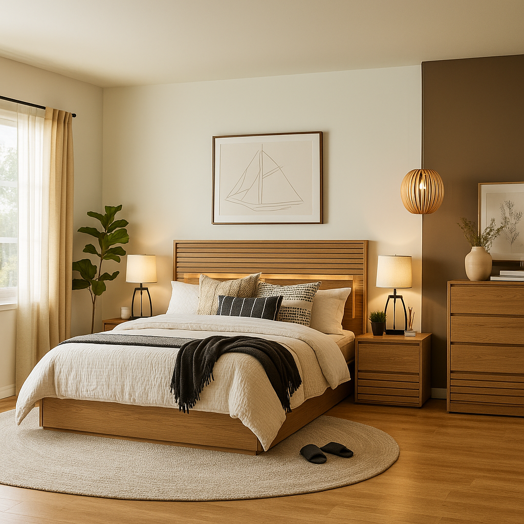 Juego de 4 piezas: incluye cabecera, dos burós y cómoda. No incluye base ni colchón. Se adapta a cualquier tamaño de base y colchón.