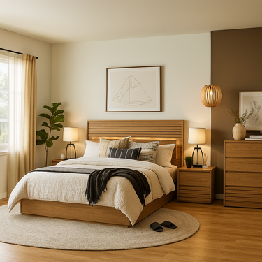 Recámara de 4 piezas en color natural. Incluye cabecera, 2 Burós, Cómoda. Se adapta a cualquier medida de base y colchón. Se entrega armada. No incluye base ni colchón.