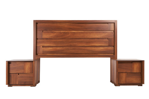 Juego de 4 piezas: incluye cabecera, dos burós y cómoda. No incluye base ni colchón. Se adapta a cualquier tamaño de base y colchón.