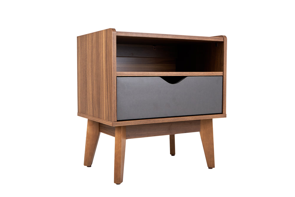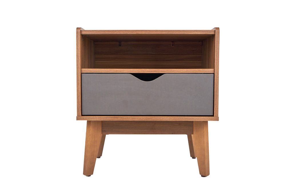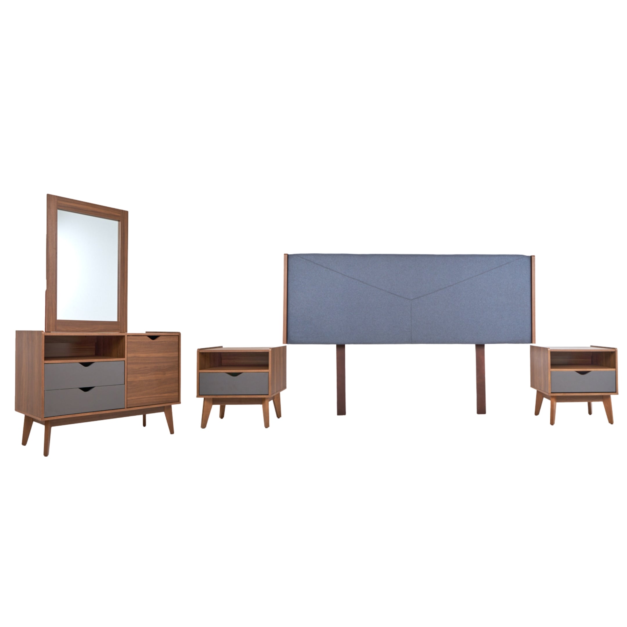 Recámara King Size de 4 Piezas con Cabecera, 2 Burós y Tocador Color Nogal y Gris y Melamina. Se entrega armado.  No incluye base ni colchón.