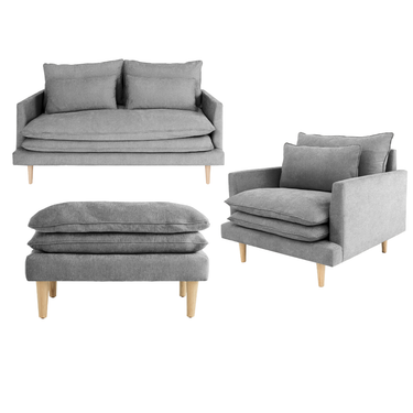 Sala con 1 sillón, 1 sofá de 2 plazas y 1 taburete Color Gris
