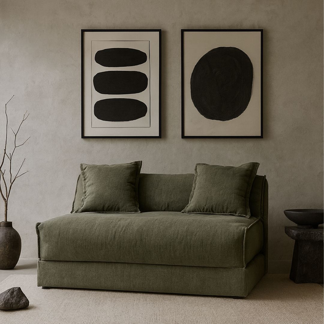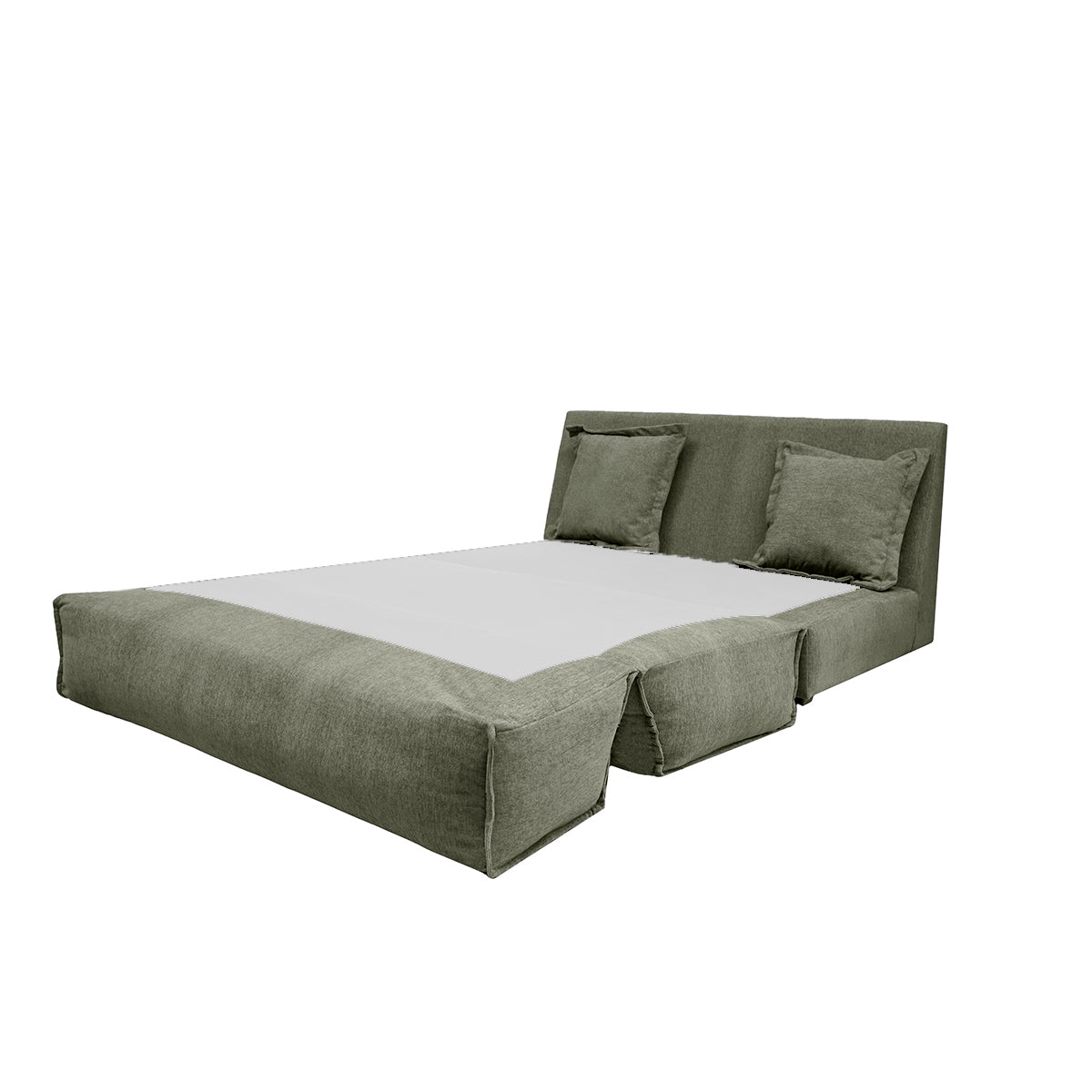 Sofá cama de estilo modernista, tapizado en tela fina de importación. Excelente opción para tomar un fabuloso descanso.