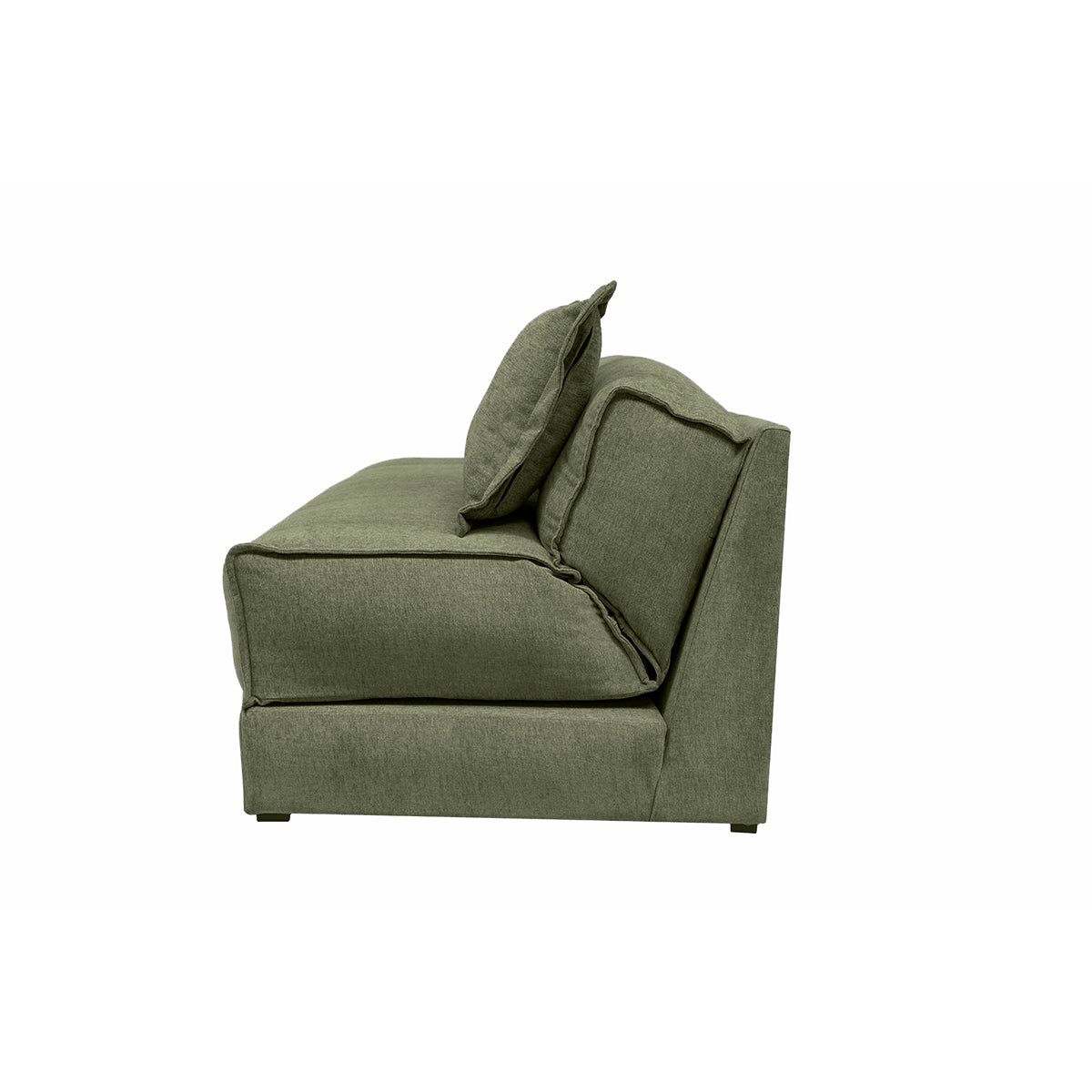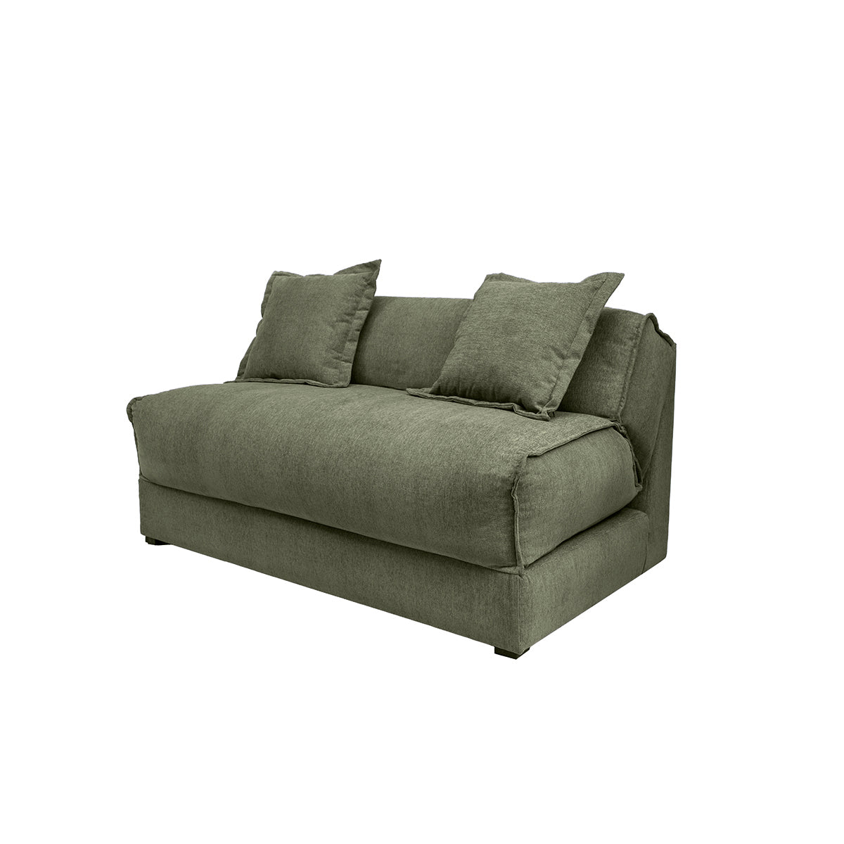 Sillón fabricado con madera de pino, hule espuma, y relleno de fibra.