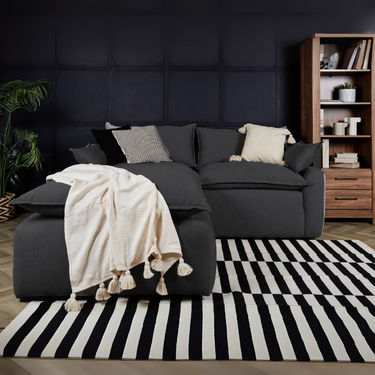 Sofá Escuadra con silueta plana, atemporal y con look de "almohada" ideal para las salas de tv o espacios de descanso, un diseño